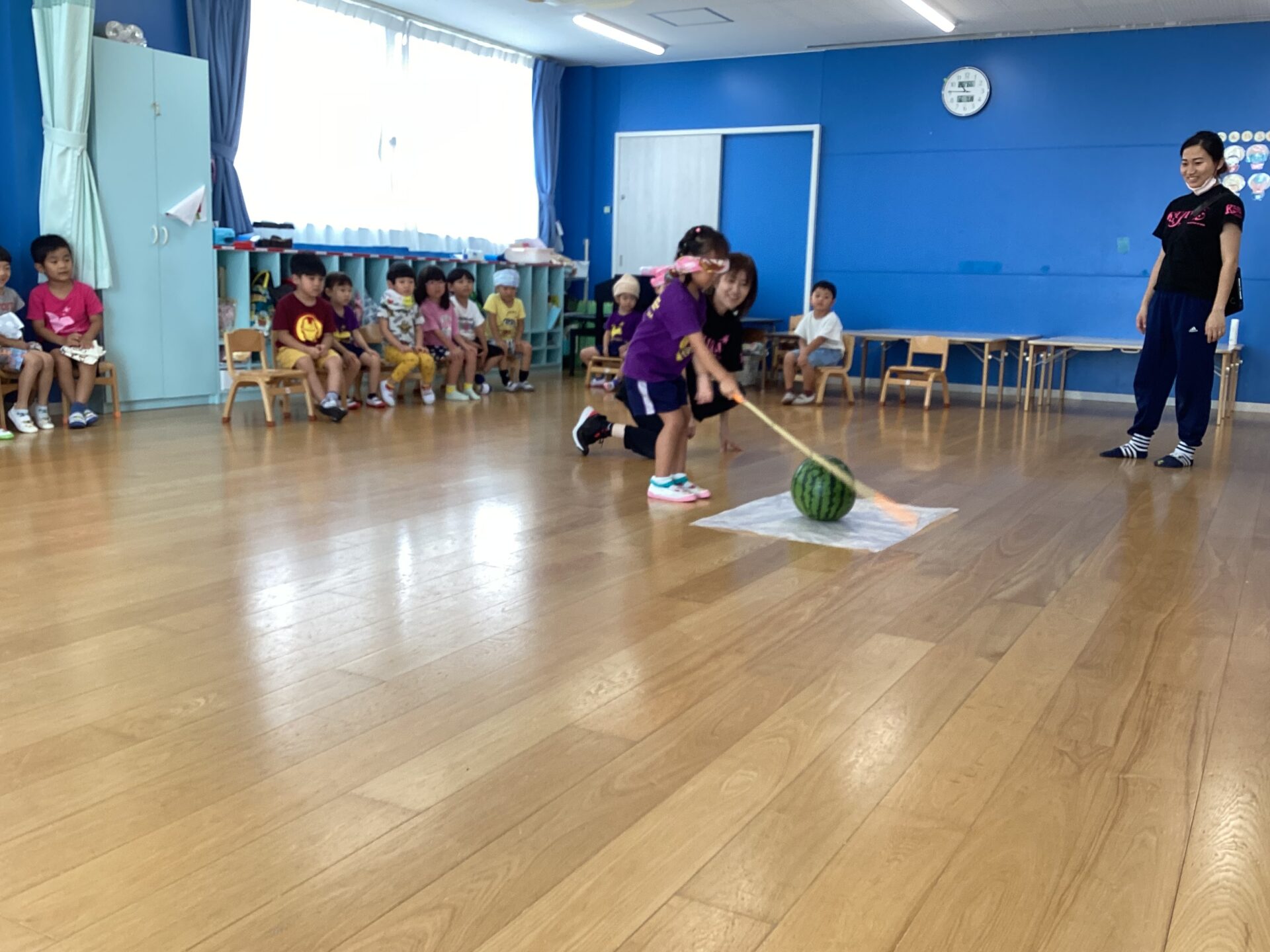 「何色かなー」と想像しながら「すいかわり」に挑戦しました。