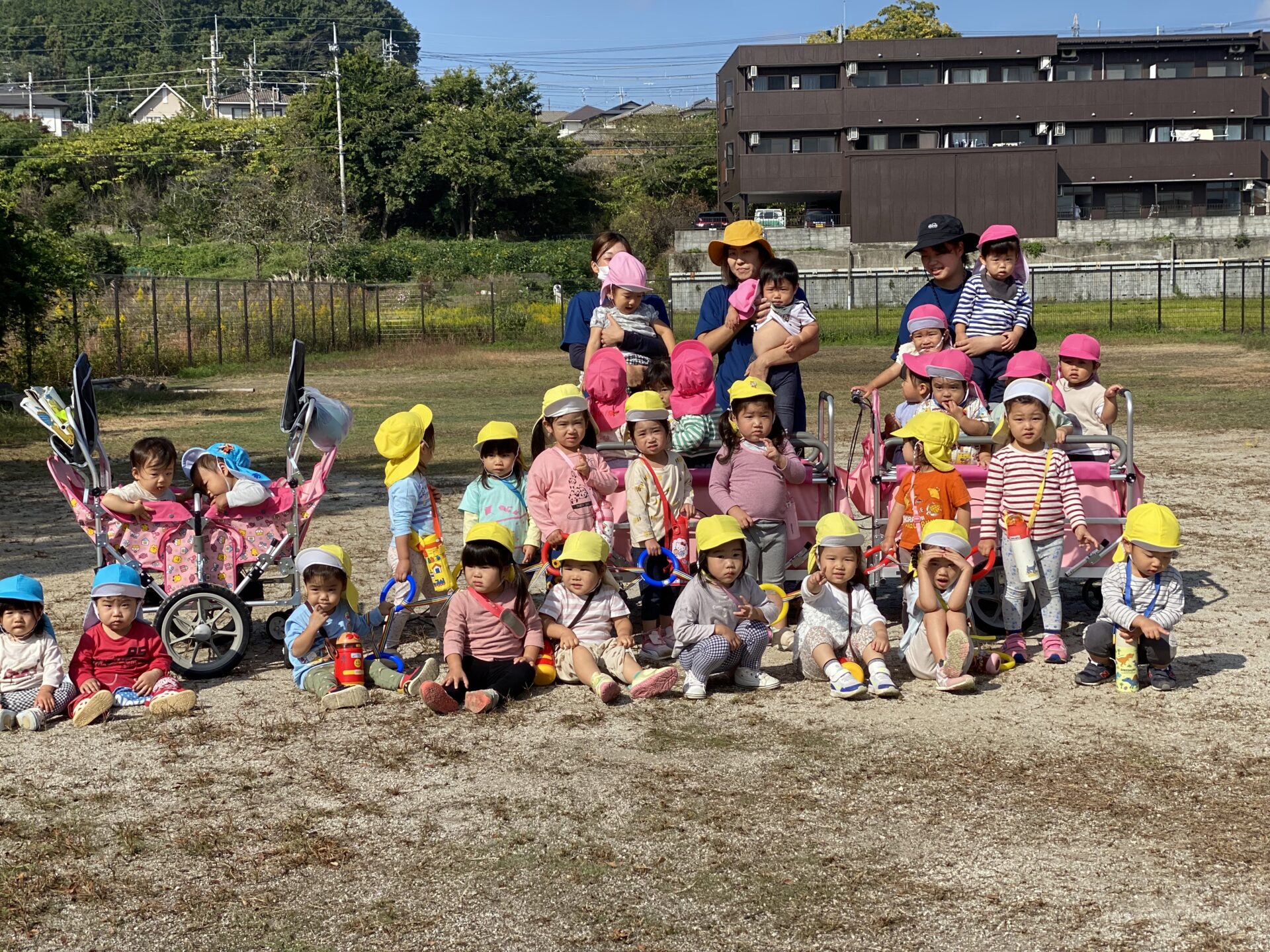 秋晴れの中、みんなでお散歩を楽しみました*