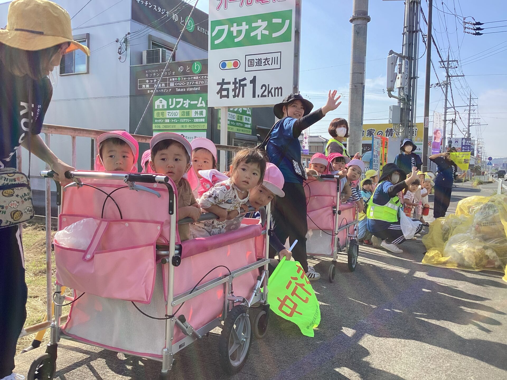 特に子どもたちに大人気の救急車が通ると大興奮!!