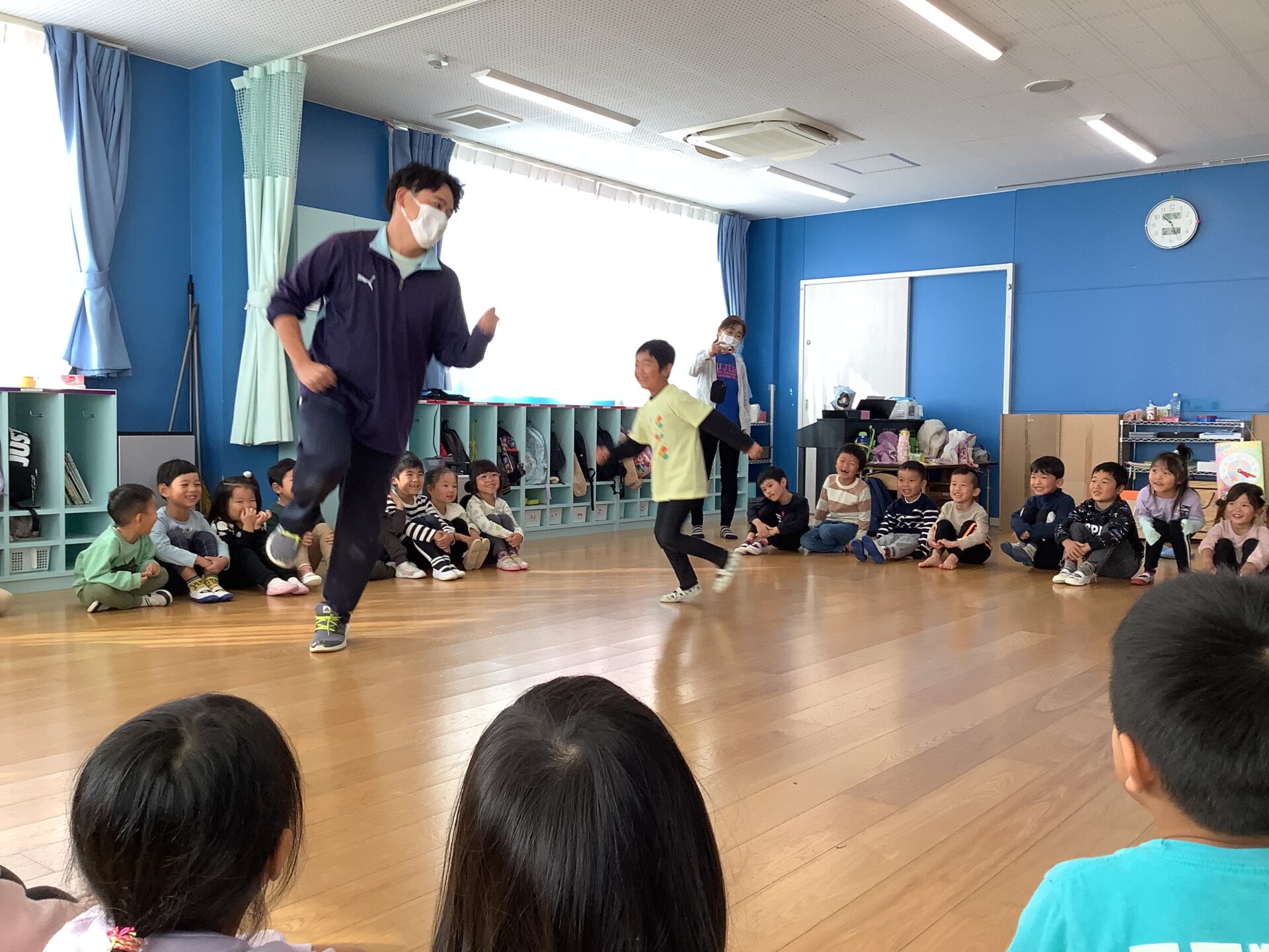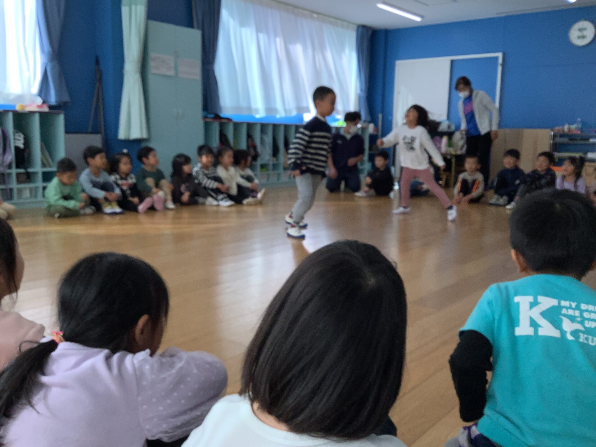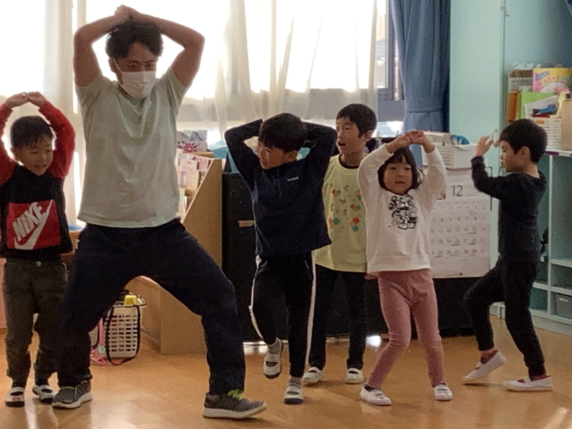 じゃんけん遊びで体が温まってきたので、次はダンスです。