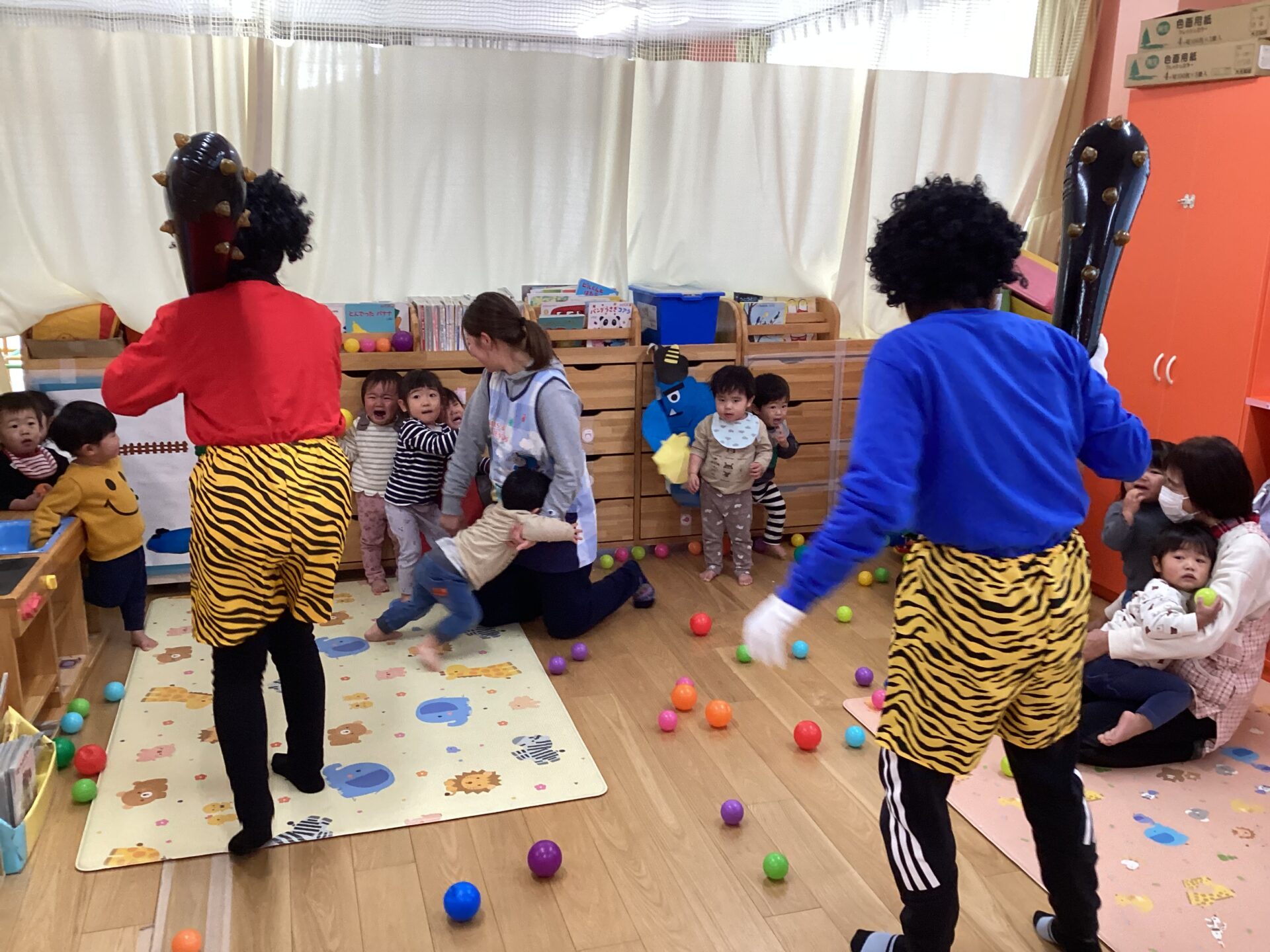 と言いながら、豆をまいたり、逃げたりしていました。