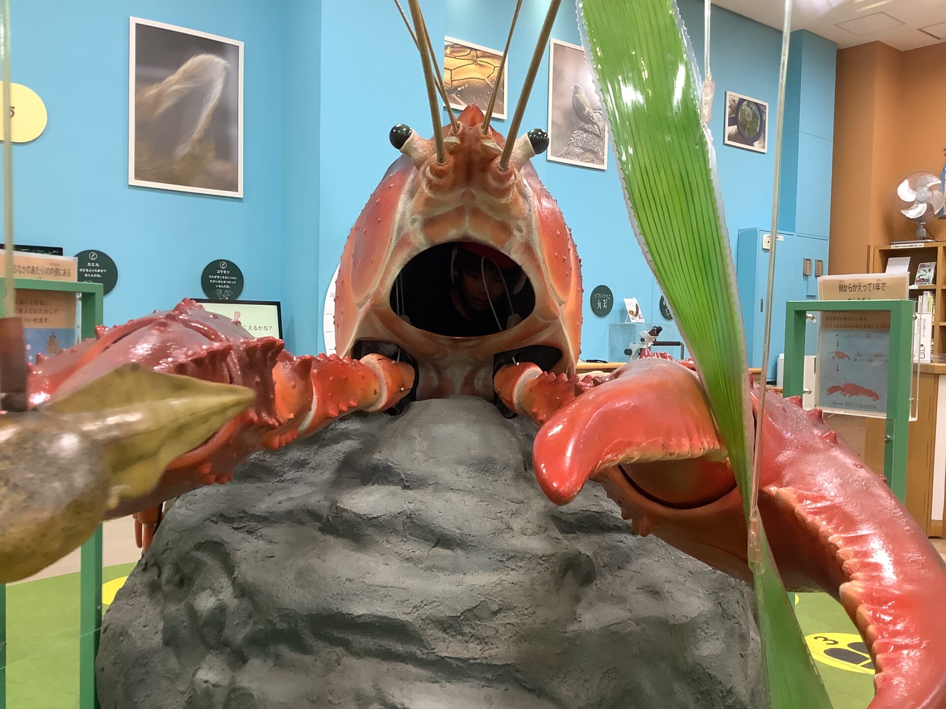 おおきなザリガニの中に入ってハサミを動かすことができます。