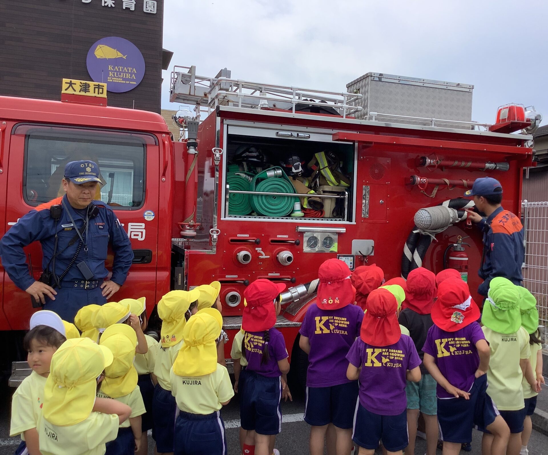 消防車と記念撮影をし、消防車を見せてもらいました。
