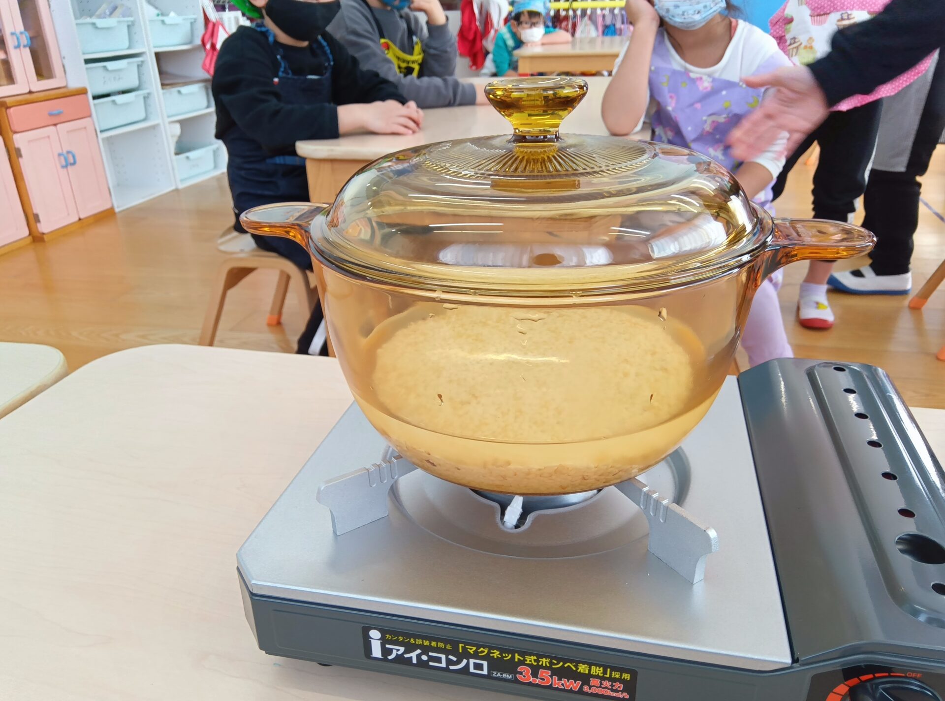 「下からぐつぐつなってる」「ごはんの、いいにおいしてきた」