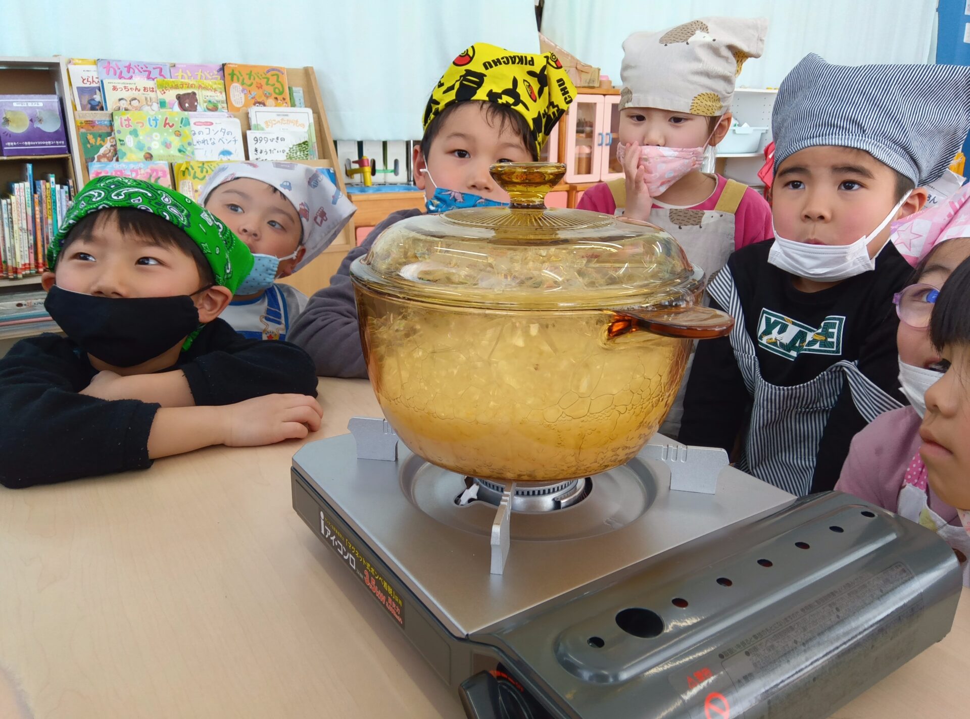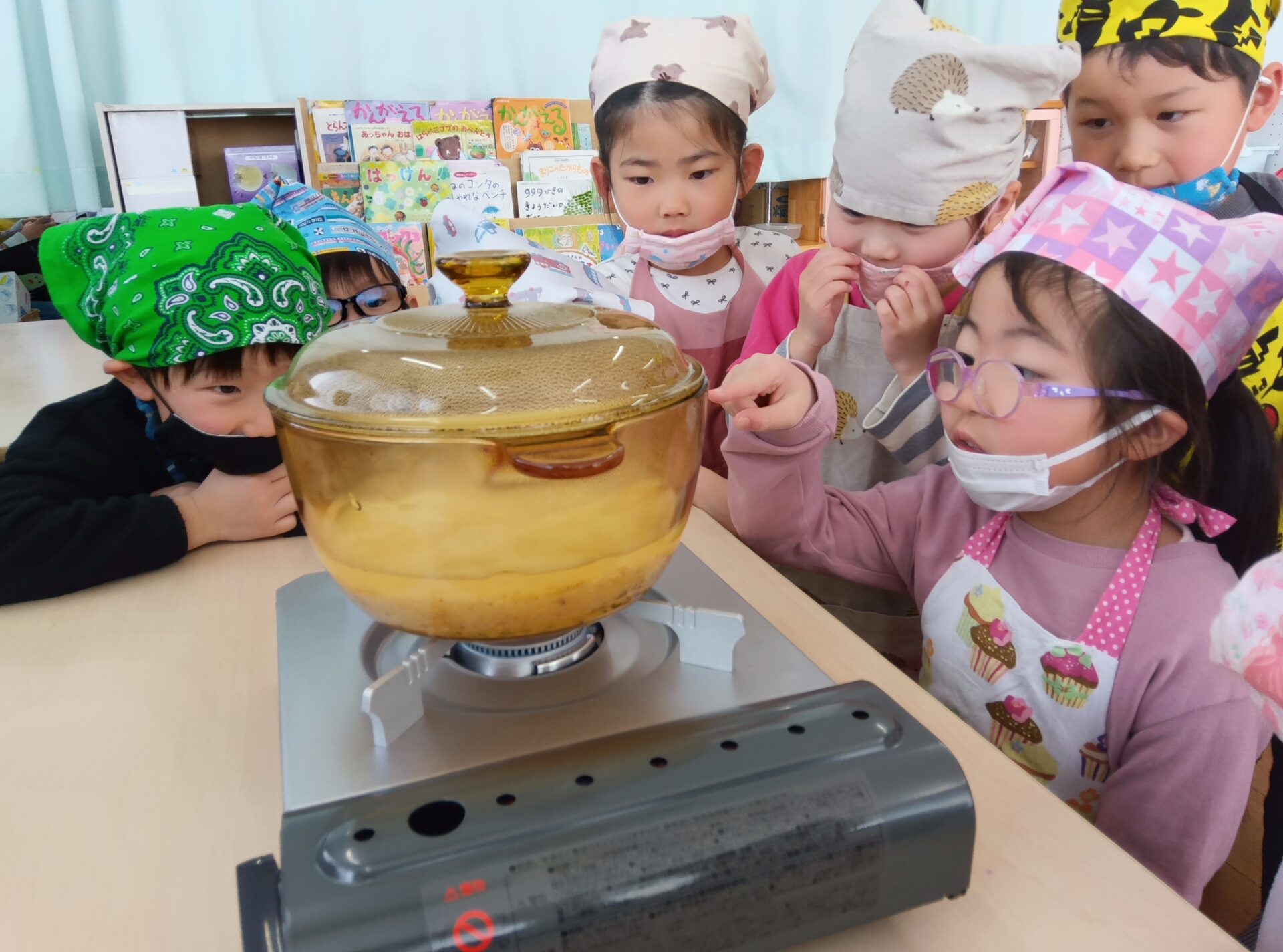 お鍋の中で何が起こるのか、興味津々。