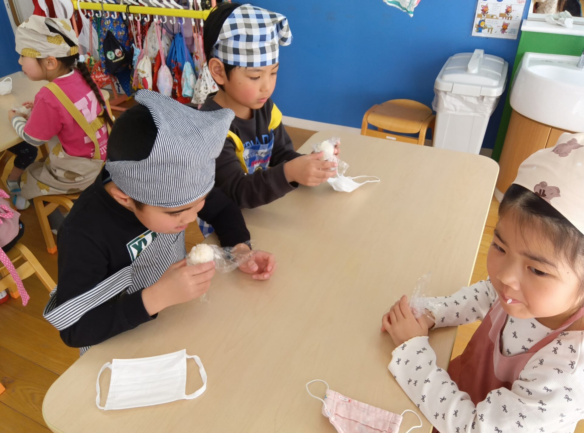 1人ずつラップに包んでおむすびを作り食べてみると、「おいしい」「今までで一番おいしい」と大絶賛でした。