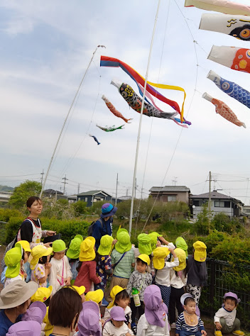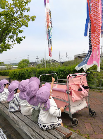 そらチーム・くじらチームの子どもたちもこいのぼり散歩に出かけました。