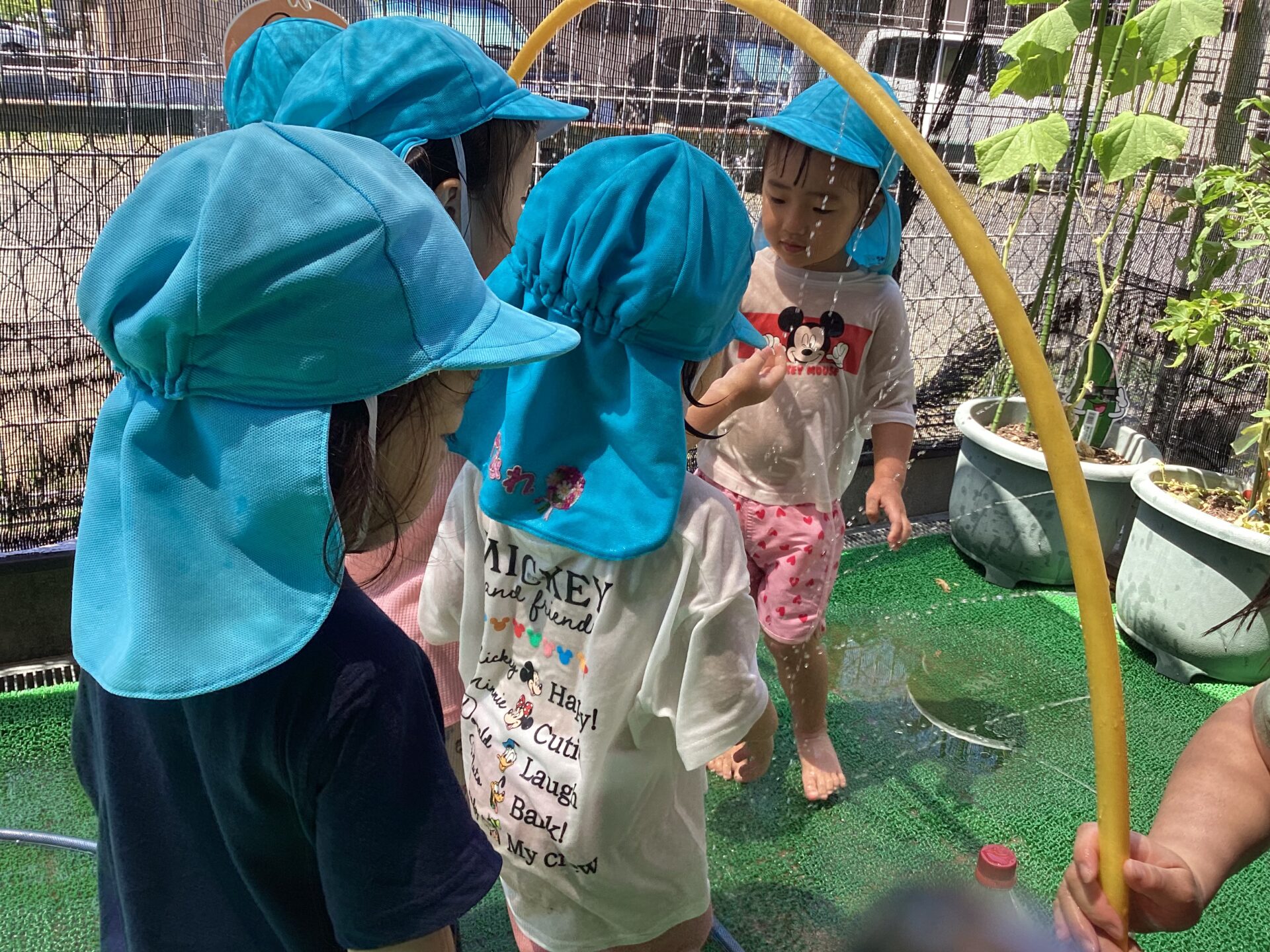 水遊びが始まり子どもたちは毎日「今日は水遊びあるかな?」と楽しみにしています。