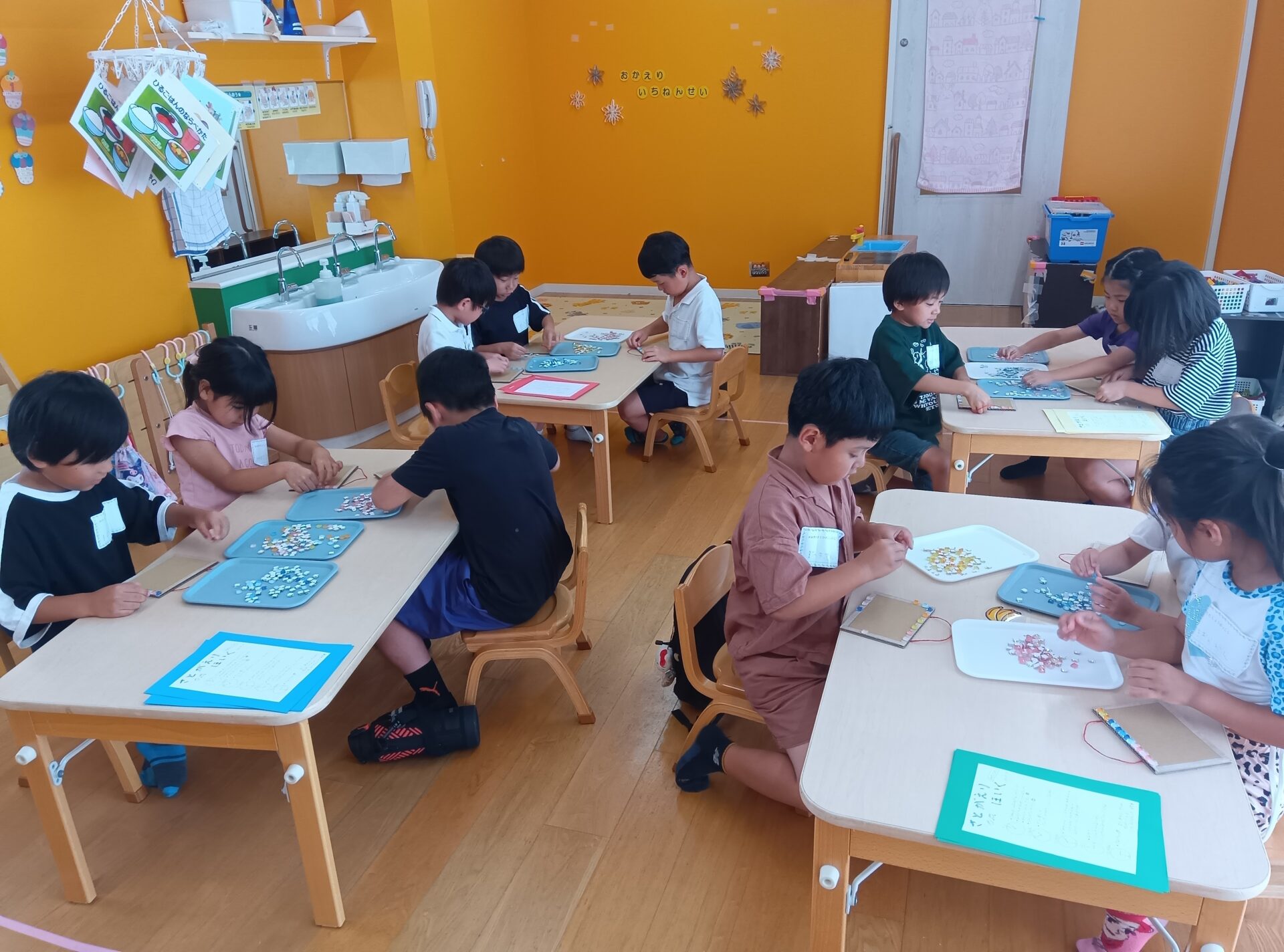 保育士と一緒に制作活動、グループごとに園内探検のミッションもあり、楽しく過ごしました。