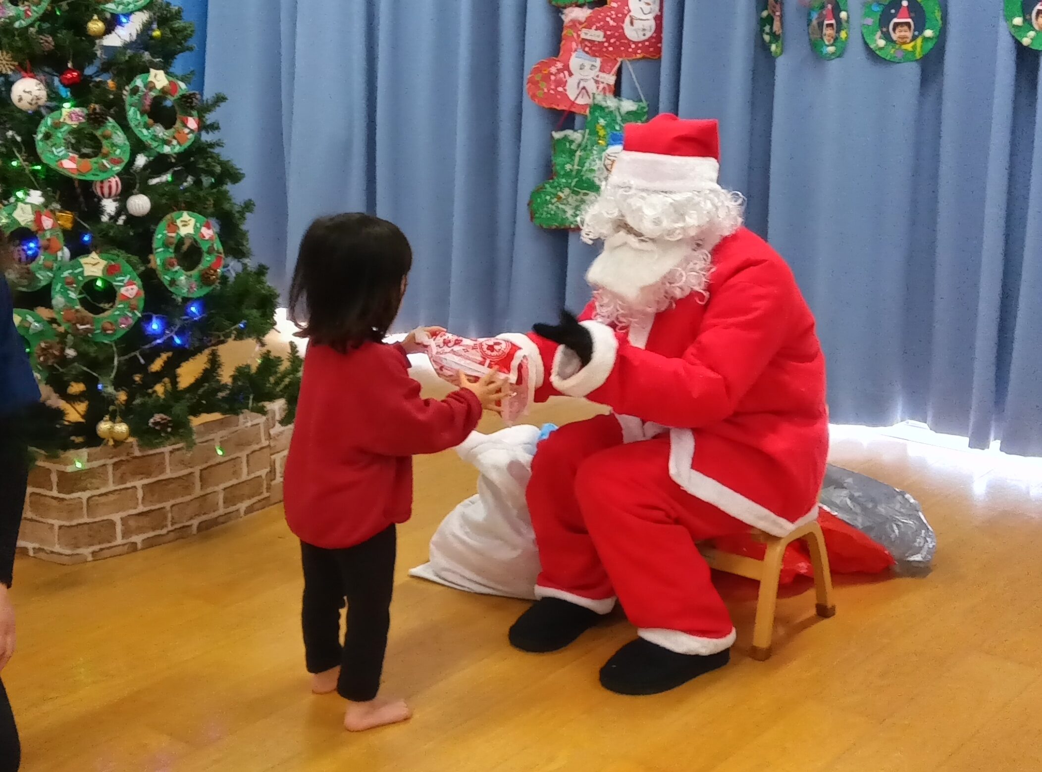 サンタさんと記念写真も撮り、楽しく過ごすことができました。12月24日はサンタさんはとても忙しいようで、プレゼントを渡し終えると、次のところへと行きました。