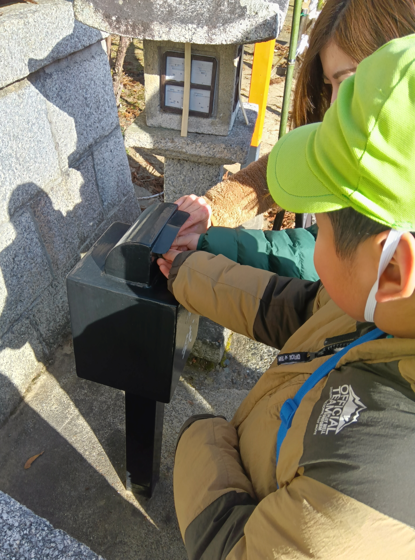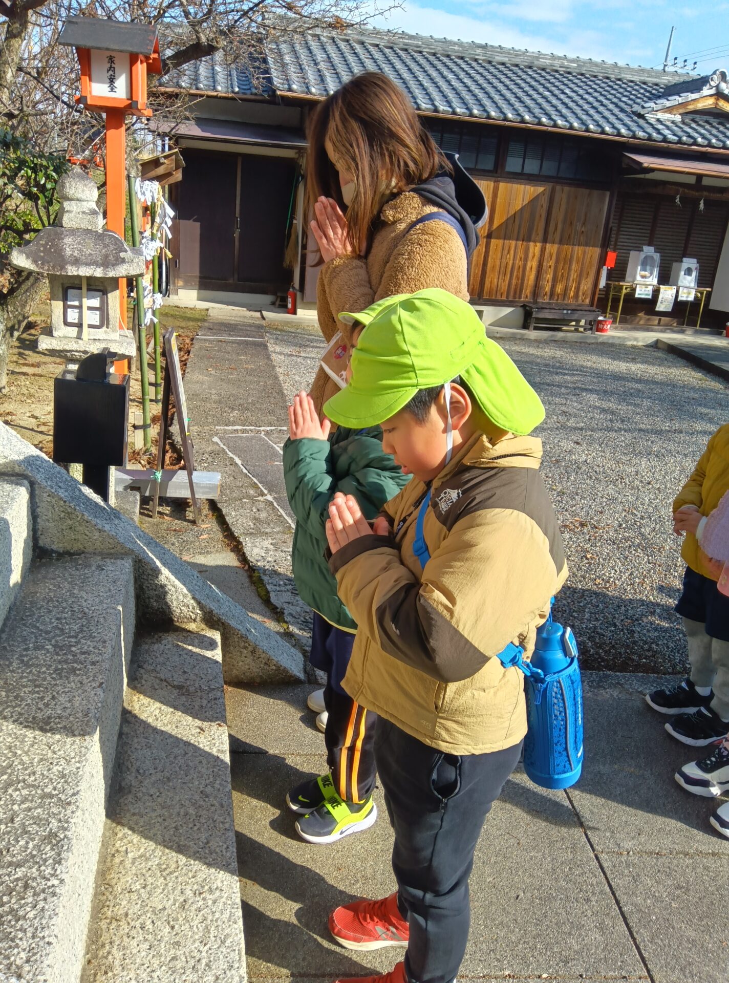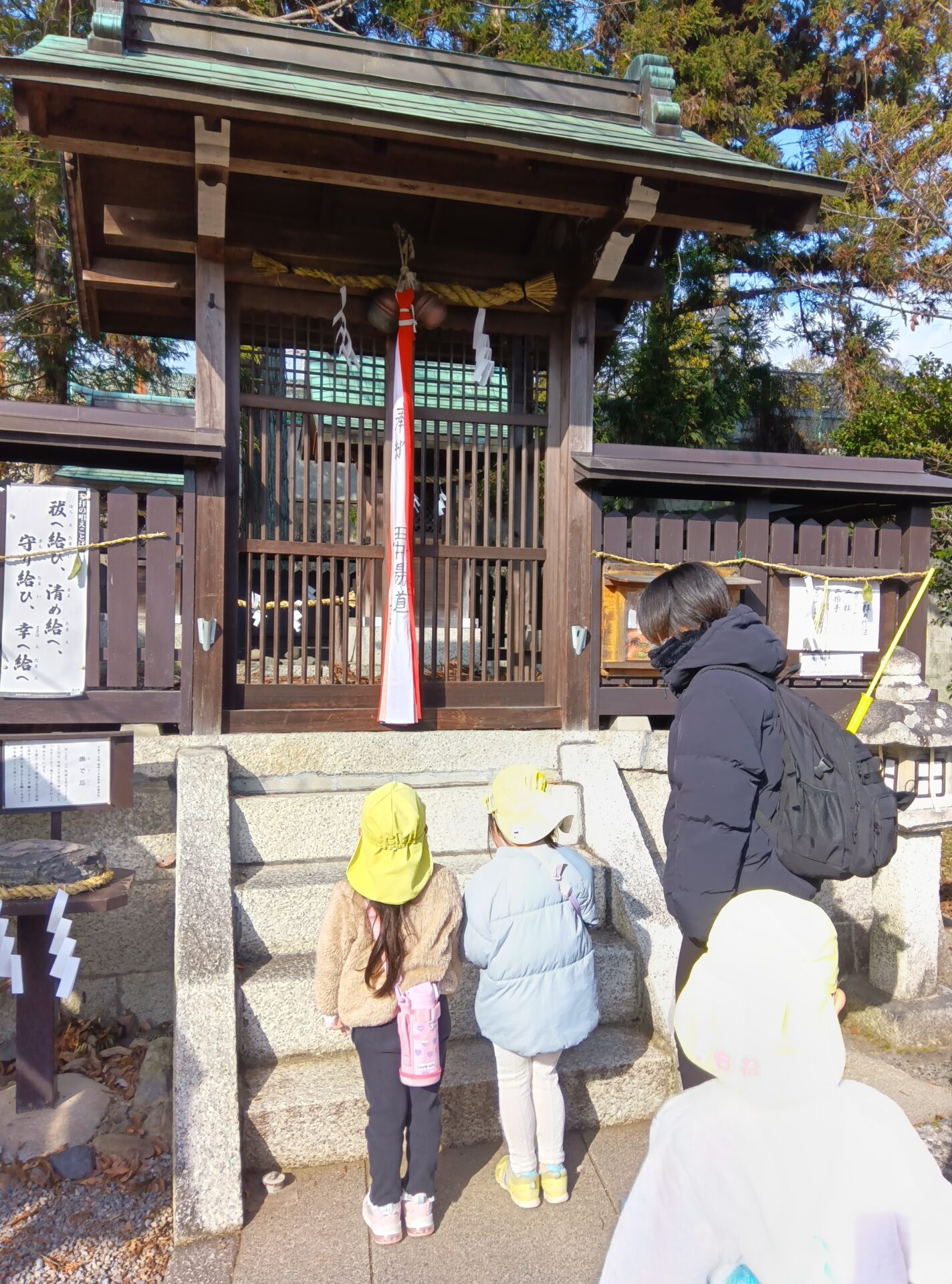 子どもたちは、お参りするときの作法を教えてもらい、お賽銭を入れて「二礼、二拍手、一礼」で参拝してきました。